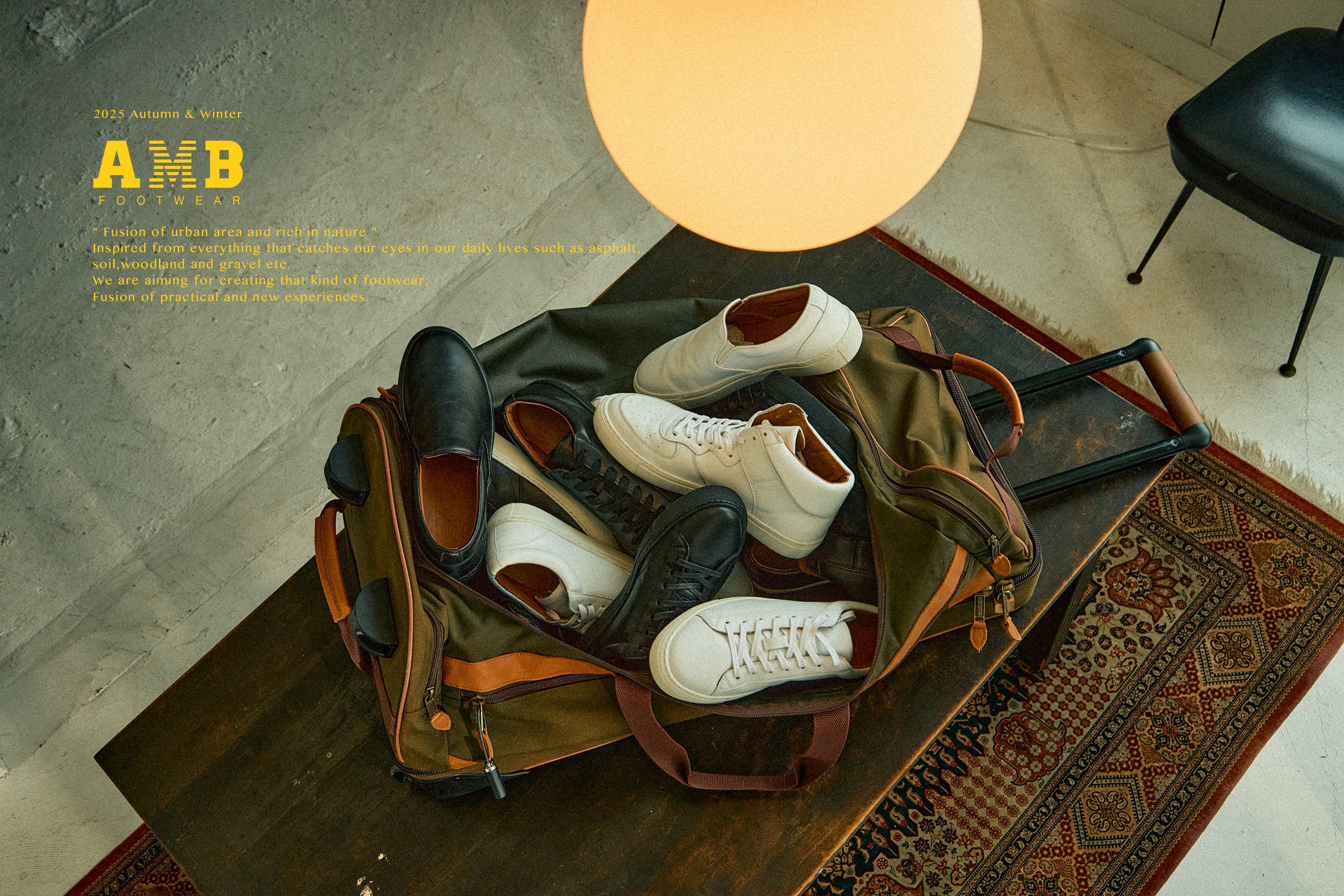 AMBのデザインのこだわりの話 最初のラインナップのモデルは全部で6種類 都会的なラバーソールを要したラインと自然やアウトドアにインスパイア されたビブラムソールラインの2種類 これらのデザインを全てフリーハンドで描き、デザインしている 驚くほどのデザインの再現性やクオリティの高さは見ての通りか。 ここで6種類のラインナップを紹介、気になるのはありましたか? art.COURT 現代ではクラシックスニーカーの代表的なアイテムであるスリッポンスニーカーをAMB風にアレンジしたアイテムはフォーマルなシーンにもカジュアルなシーンにも合う。ラバーソールにサイドマッケイが施されたスニーカー。 art.CLIVE 1950年代のテニス用のスニーカーを参考にデザインされたブランドのアイコンとして代表するモデルでもあるコートスニーカー。ヨーロッパのタンナーにより作られた上質なレザーにシンプルなデザインシューズはフォーマルなシーンにもカジュアルなシーンにも合う。ラバーソールにサイドマッケイが施されたスニーカー。 art.BASCHU 1980年代のバスケットシューズのアーカイブを現代風にアレンジしたクラシックスニーカー。ヨーロッパのタンナーにより作られた上質のレザーに対しシンプルかつ洗練されたラバーソールにサイドマッケイが施されたスニーカー。 art.TRUL.C1 1990年代のトレッキングシューズにオマージュを捧げデザインされたシューズ。イタリアの名門タンナーである「オペラ社」により作られたアッパーレザーに対しギリーシューズのディテールを取り入れたアッパーデザインにVibram社のARCTIC GRIPソールが使用されている。 art.GHILLIE クラシックシューズの定番的モデルでもあるチャッカーブーツにギリーシューズのディテールを融合したシューズ。イタリアの名門タンナーである「オペラ社」により作られたアッパーレザーにグリップ性に優れたスペックが搭載されたVibram社のARCTIC GRIPソールを採用したスニーカーは一見シンプルなデザインでありながらも細部にまでこだわったパターンカッティングが施されている。 art.TREK3 定番的なトレッキングブーツに対しペコスブーツの要素をミックスさせたシューズ。イタリアの名門タンナーである「オペラ社」により作られた肌ざわりの良い上質なイスエードレザーをアッパーマテリアルに対して本格的なアウトドアのシーンで使用されているVibram社のグリップ性に優れたARCTIC GRIPソールが搭載されている。 ...