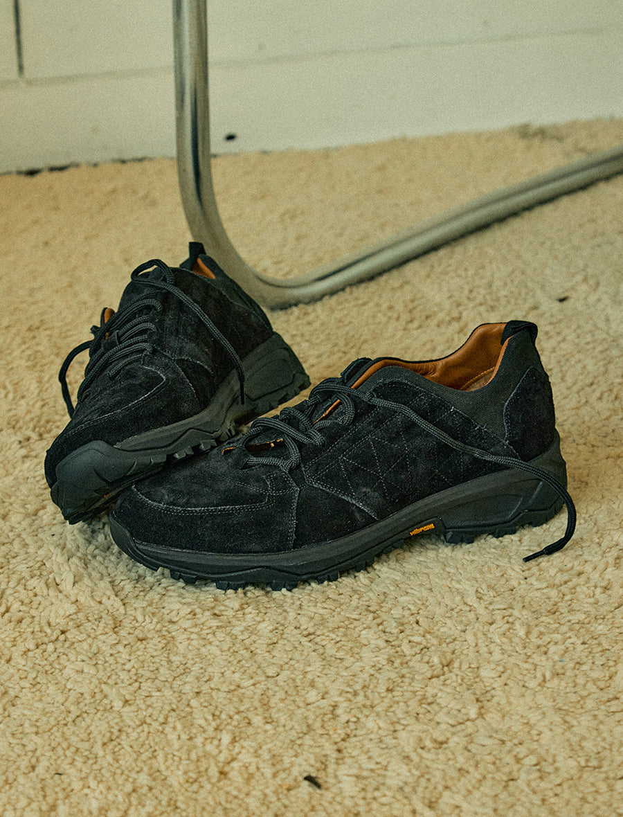 AMBのデザインのこだわりの話 最初のラインナップのモデルは全部で6種類 都会的なラバーソールを要したラインと自然やアウトドアにインスパイア されたビブラムソールラインの2種類 これらのデザインを全てフリーハンドで描き、デザインしている 驚くほどのデザインの再現性やクオリティの高さは見ての通りか。 ここで6種類のラインナップを紹介、気になるのはありましたか? art.COURT 現代ではクラシックスニーカーの代表的なアイテムであるスリッポンスニーカーをAMB風にアレンジしたアイテムはフォーマルなシーンにもカジュアルなシーンにも合う。ラバーソールにサイドマッケイが施されたスニーカー。 art.CLIVE 1950年代のテニス用のスニーカーを参考にデザインされたブランドのアイコンとして代表するモデルでもあるコートスニーカー。ヨーロッパのタンナーにより作られた上質なレザーにシンプルなデザインシューズはフォーマルなシーンにもカジュアルなシーンにも合う。ラバーソールにサイドマッケイが施されたスニーカー。 art.BASCHU 1980年代のバスケットシューズのアーカイブを現代風にアレンジしたクラシックスニーカー。ヨーロッパのタンナーにより作られた上質のレザーに対しシンプルかつ洗練されたラバーソールにサイドマッケイが施されたスニーカー。 art.TRUL.C1 1990年代のトレッキングシューズにオマージュを捧げデザインされたシューズ。イタリアの名門タンナーである「オペラ社」により作られたアッパーレザーに対しギリーシューズのディテールを取り入れたアッパーデザインにVibram社のARCTIC GRIPソールが使用されている。 art.GHILLIE クラシックシューズの定番的モデルでもあるチャッカーブーツにギリーシューズのディテールを融合したシューズ。イタリアの名門タンナーである「オペラ社」により作られたアッパーレザーにグリップ性に優れたスペックが搭載されたVibram社のARCTIC GRIPソールを採用したスニーカーは一見シンプルなデザインでありながらも細部にまでこだわったパターンカッティングが施されている。 art.TREK3 定番的なトレッキングブーツに対しペコスブーツの要素をミックスさせたシューズ。イタリアの名門タンナーである「オペラ社」により作られた肌ざわりの良い上質なイスエードレザーをアッパーマテリアルに対して本格的なアウトドアのシーンで使用されているVibram社のグリップ性に優れたARCTIC GRIPソールが搭載されている。 ...